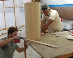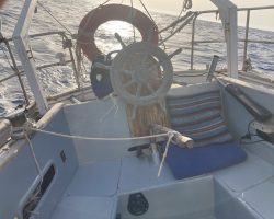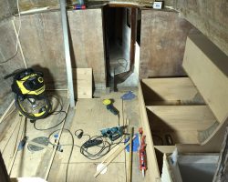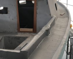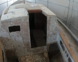 The cockpit and the companionway were completely redone. According to the GGR rules, the lockers were reconstructed to be totally waterproof. The cockpit base was strengthened with frames and everything was covered with fiberglass.