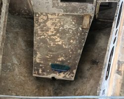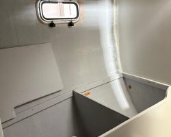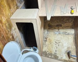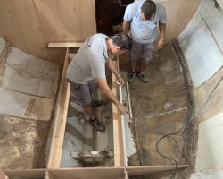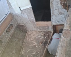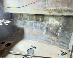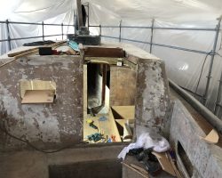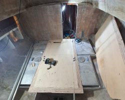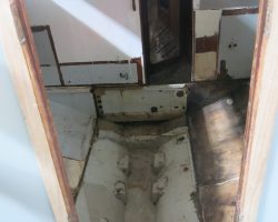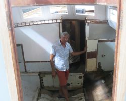 Everything in the cabin including the cupboards, fridge, the head, hoses, electrical wires, batteries and tanks were taken out. Finally the boat became just an empty shell, except for the bulwarks that remained because Can Sürekli insisted on keeping the originals to ensure hull strength.