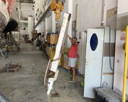 In the meantime Selim was adamant on installing a hydrogenerator that could be lifted up from the water when not in use. Can had made a vertical tunnel for this type of hydrogenerator for our earlier boat, and Alubat OVNI 445 Keyif, and we had used it very successfully for many ocean passages. Now, he prepared another one for HDC, so that we could install our new Remoran hydrogenerator.