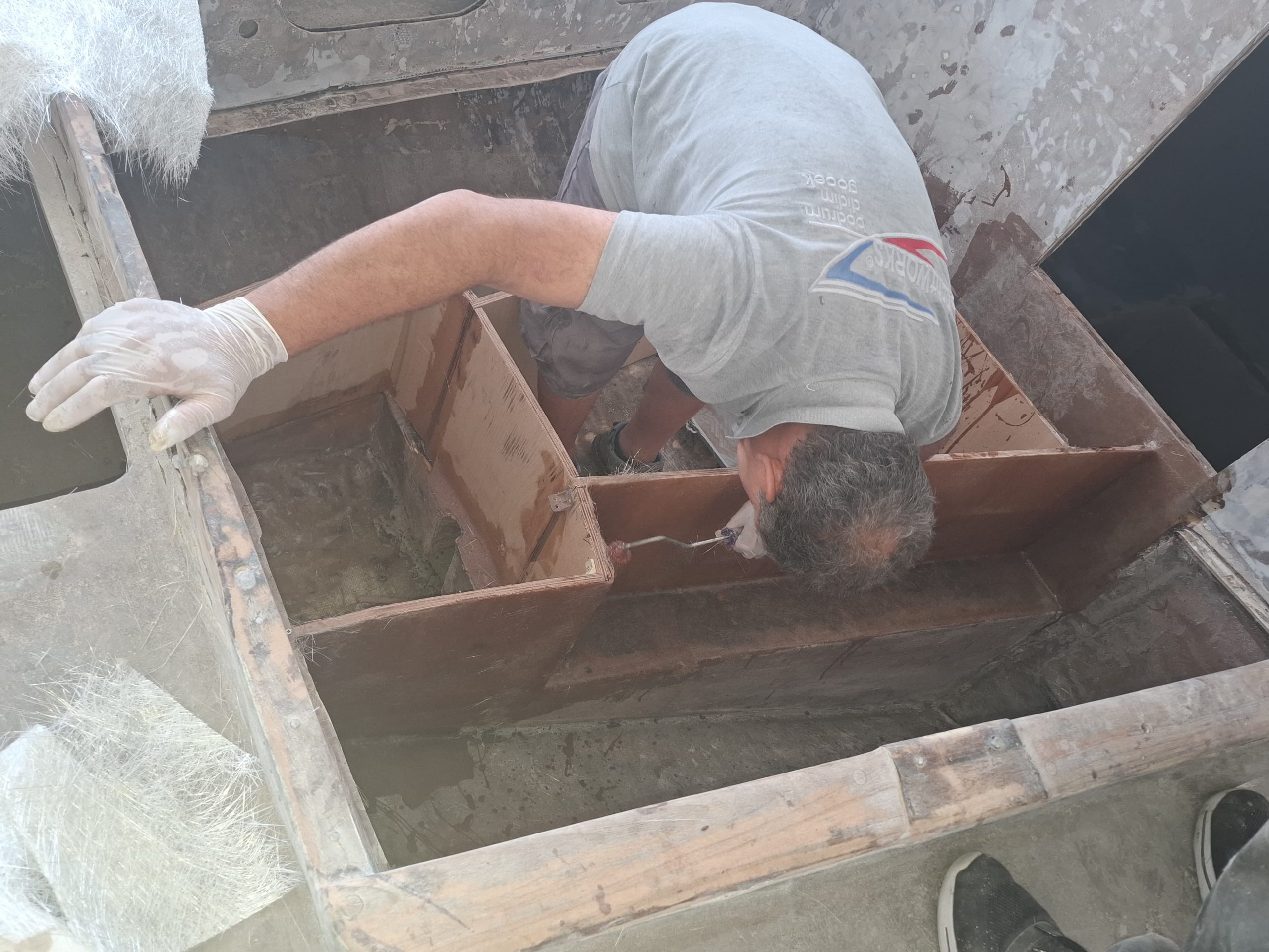 He also had our carpenter Fatih Şeren to prepare compartments for the diesel and water tanks which would also serve as an inner skeleton for the hull when covered with fiberglass. Selim made very precise, 3D templates from cardboard, computerized images were drawn from these templates by our engineer Çağlar and tanks were manufactured from 2 mm stainless steel plates again by Murat Aydın.